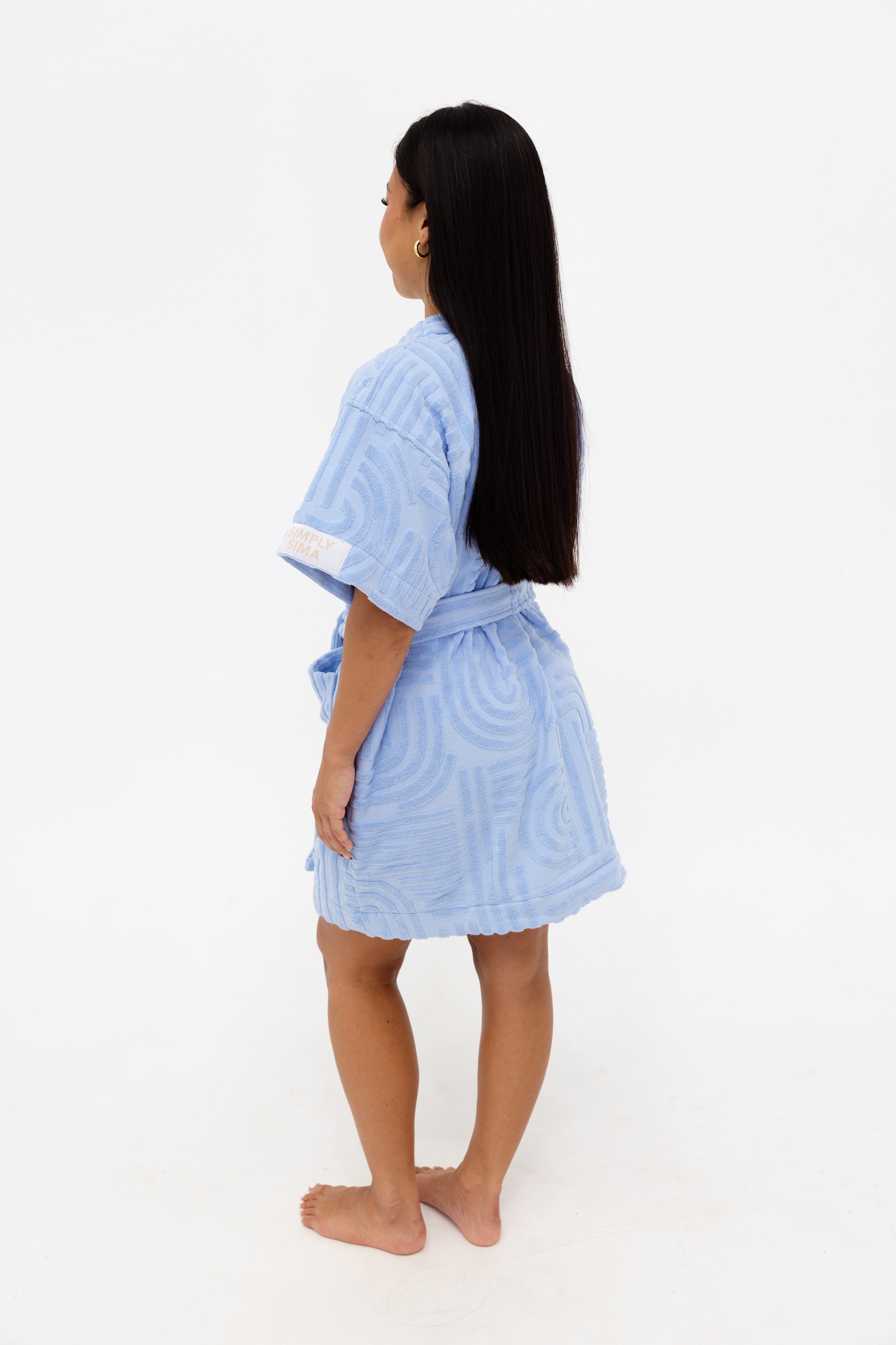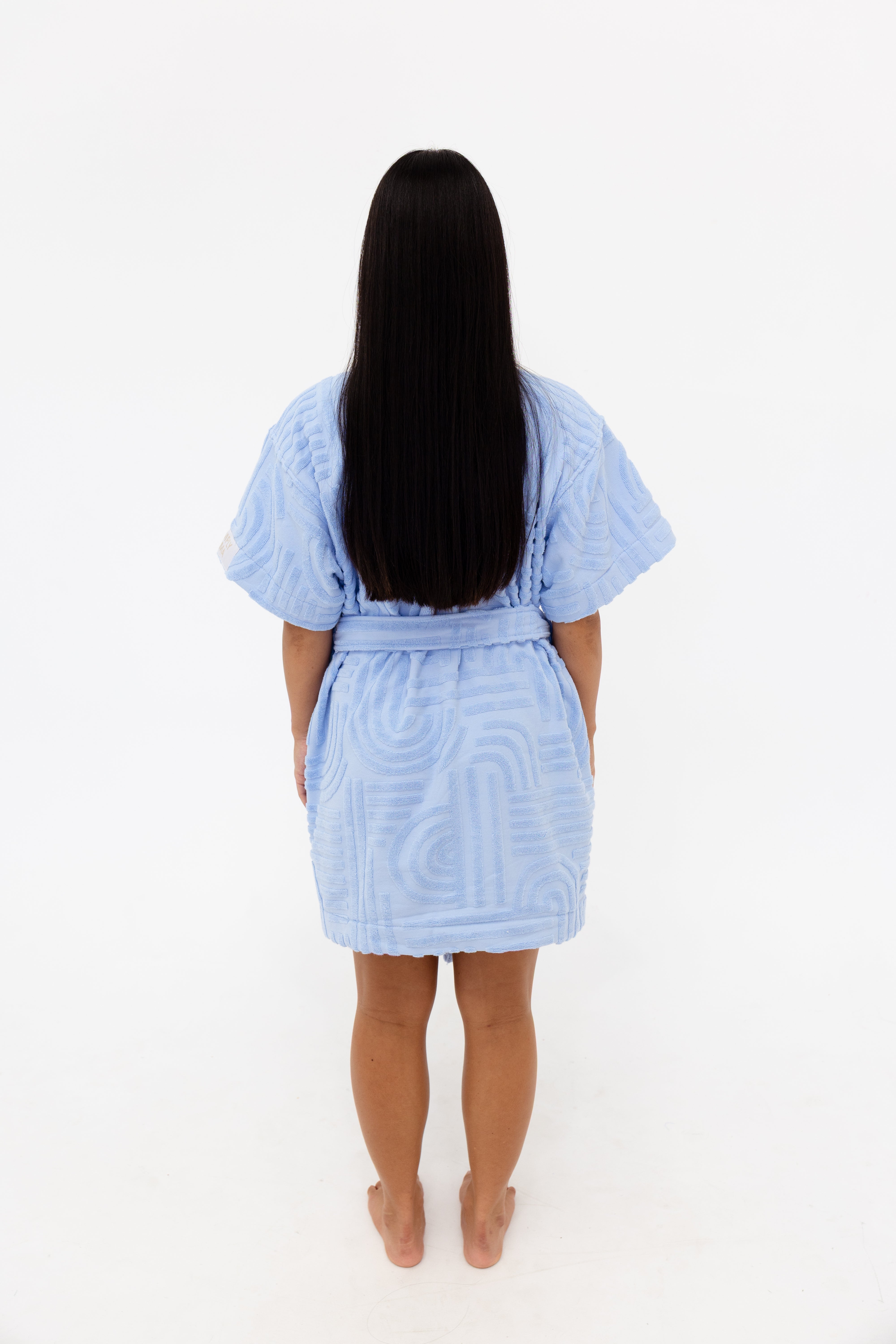 A calm blue robe designed for everyone, every day. Our robes are designed for real life - salty dips, sundown sips, post-shower lounging, getting ready with the girls, sauna sessions, travel days, and everything in between. They’re cute, comfy, stylish, and made to be worn everywhere, not just at home.