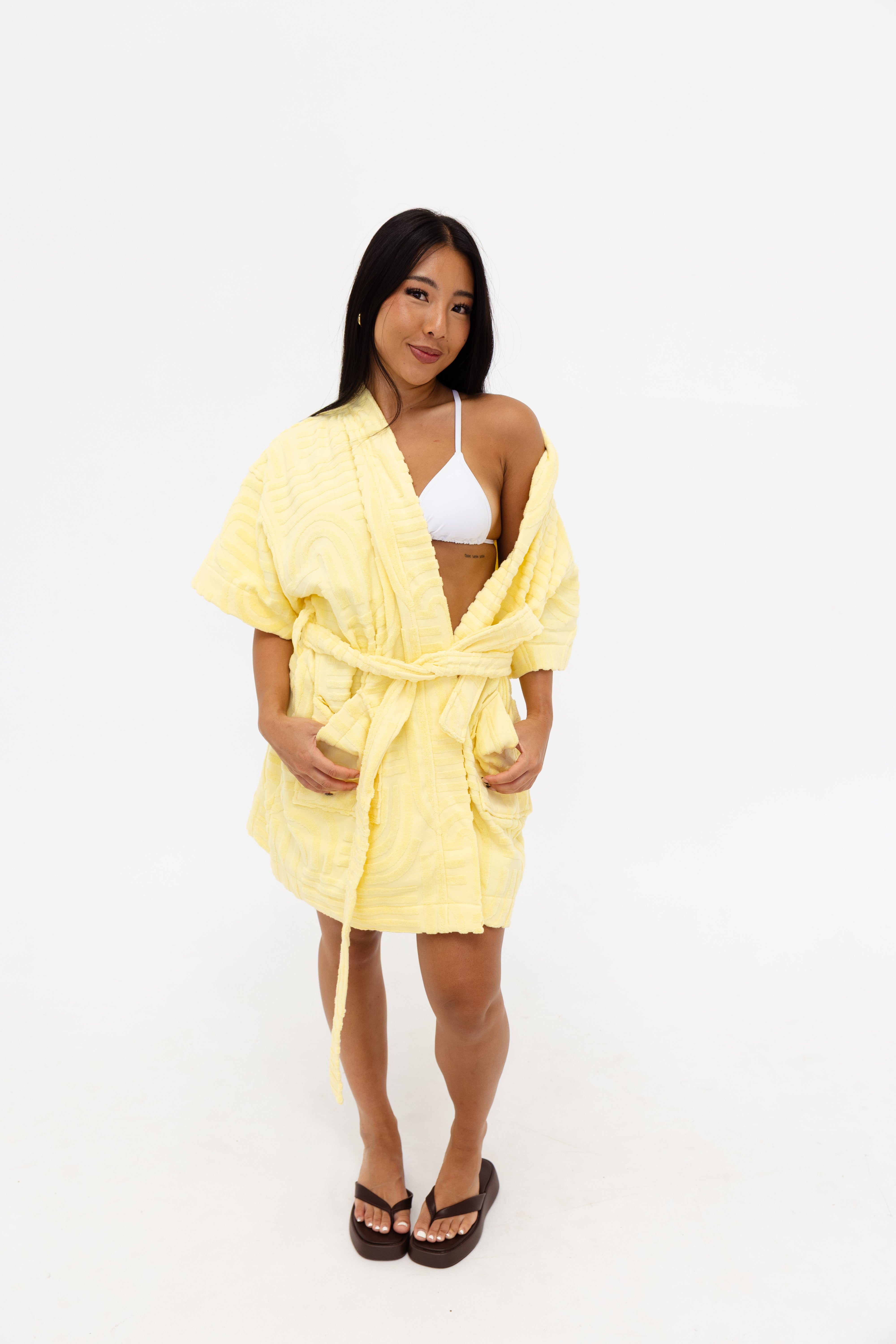 Meet Limoncello - a bright yellow robe for golden days and slow nights. Our robes are designed for real life - salty dips, sundown sips, post-shower lounging, getting ready with the girls, sauna sessions, travel days, and everything in between. They’re cute, comfy, stylish, and made to be worn everywhere, not just at home.
